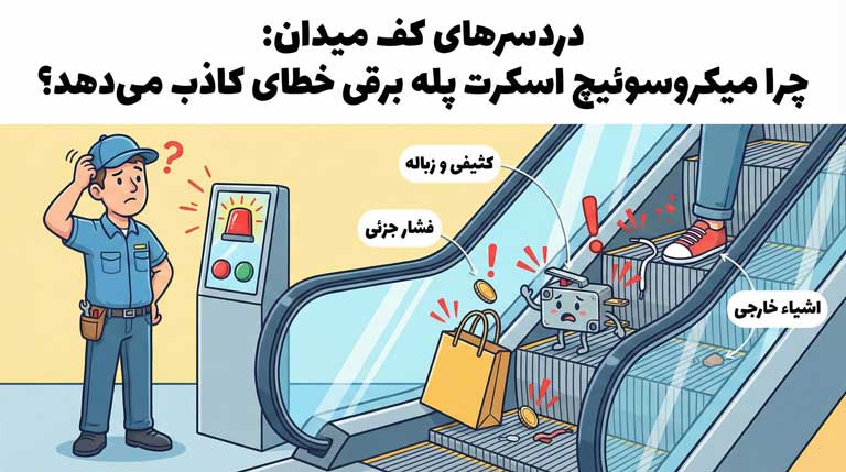 ایمنی در تجهیزاتِ سنگین جای مسامحه و میانبر زدن نیست. میکروسوئیچ اسکرت پله برقی آخرین سنگرِ دفاعیِ مسافران در برابر خطراتِ جبرانناپذیر است. کالیبراسیونِ دقیقِ این قطعهِ میلیمتری و رفعِ ارتعاشاتِ شاسی، نیازمندِ دانشِ مهندسی و تجربهی کفِ میدان است.