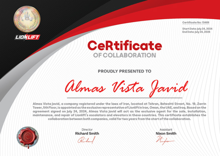 همچنین، افتخار داریم اعلام کنیم که نمایندگی رسمی شرکت لاین لیفت آلمان توسط الماس ویستا جاوید در وبسایت رسمی این برند جهانی نیز به ثبت رسیده است. برای مشاهده و بررسی اصالت نمایندگی، میتوانید به صفحه رسمی لاین لیفت مراجعه کرده و اطلاعات مربوط به نمایندگی ایران را مشاهده نمایید.